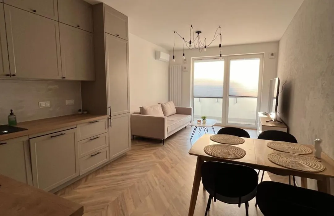 Apartament oferuje miejsce do pobytu dziennego i balkon, a także nowoczesne udogodnienia, takie jak zmywarka i klimatyzacja.